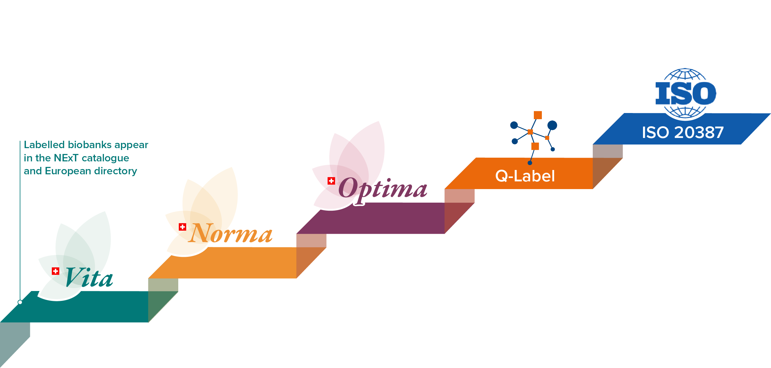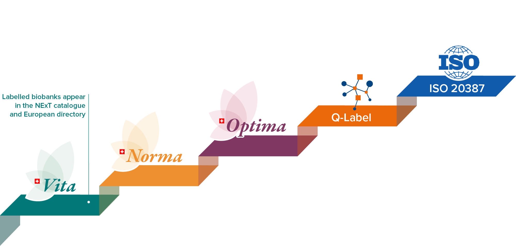 Recognizing quality and strengthening trust in Swiss biobanking. Our Labelling Program provides a stepwise approach that helps biobanks achieve and demonstrate their compliance with standards in quality, and set up appropriate governance. The three levels — VITA, NORMA, and OPTIMA — reflect increasing degrees of operational maturity and support different stages of development.